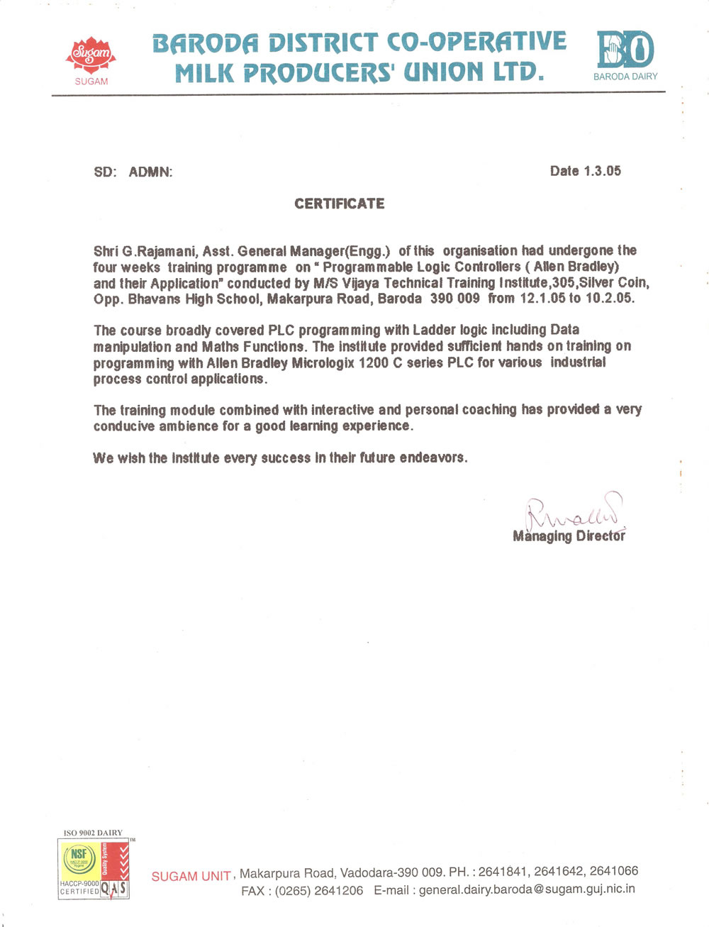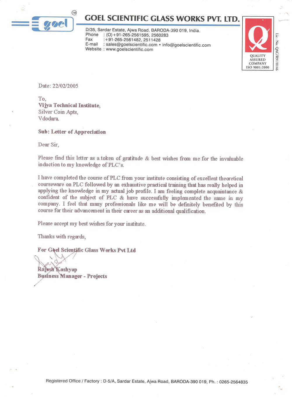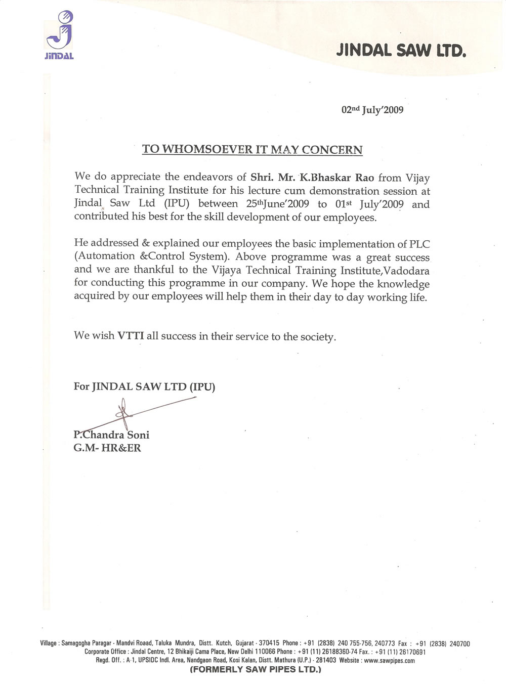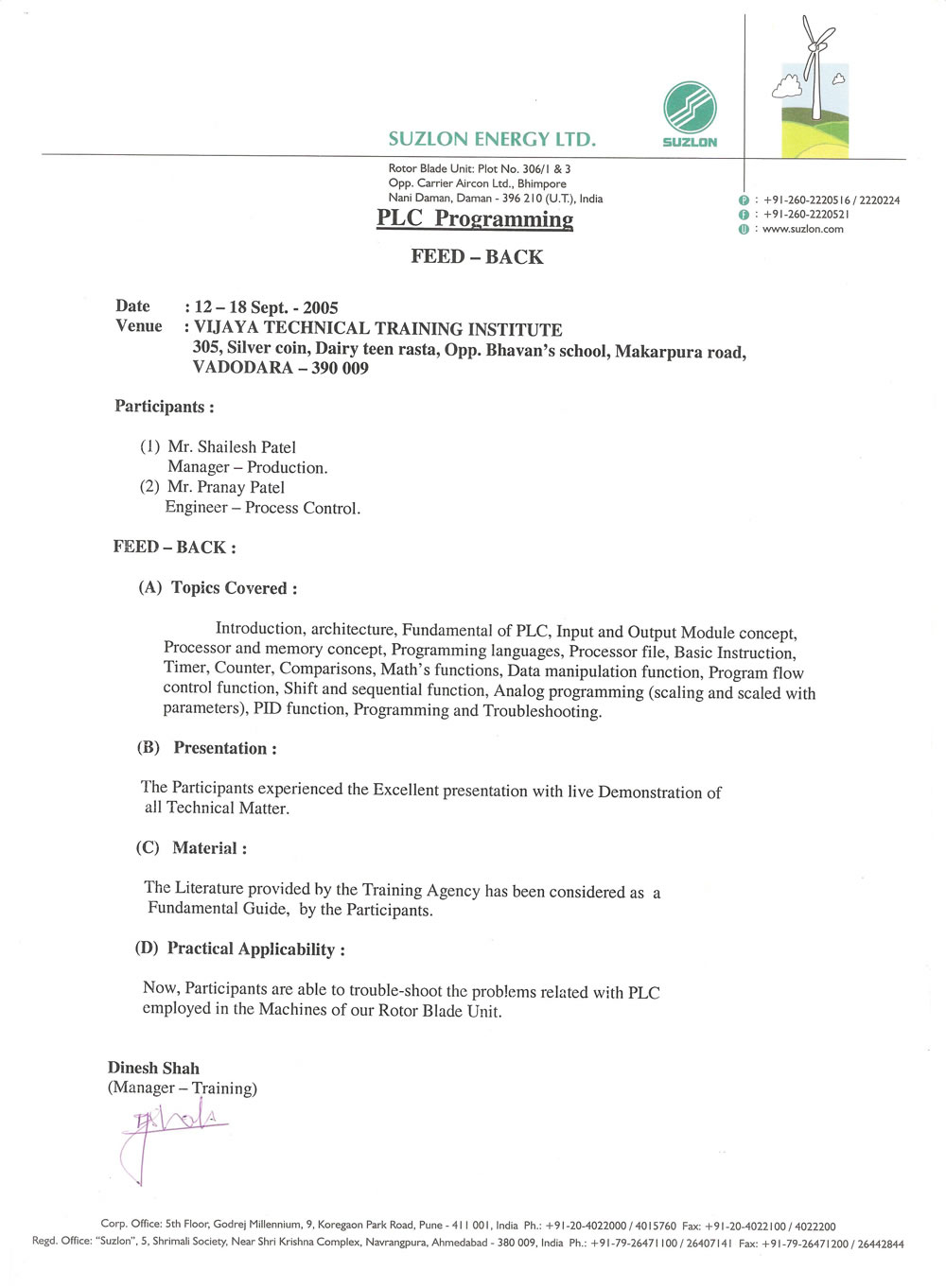Essar Constructions (India) Limited Baroda Dairy Baroda Dairy Bell Ceramics Ltd. Devanshi Electronics Goel Scientific Glassworks Pvt. Ltd. Suzlon Energy Ltd. Jindal Saw Ltd.